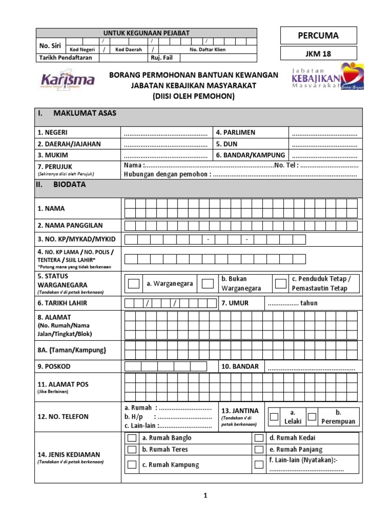 Free Pdf Download Lampiran 1 Borang Permohonan Jkm 18 2016 2017 Farid N Roses Academia Edu